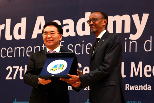 白春禮為盧旺達總統(tǒng)Paul Kagame頒發(fā)TWAS獎章