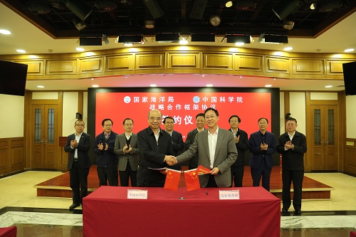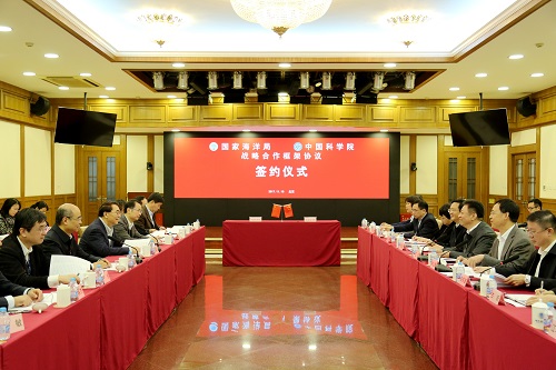 11月10日,中國(guó)科學(xué)院與國(guó)家海洋局戰(zhàn)略合作協(xié)議簽約儀式在京舉行。中科院院長(zhǎng)、黨組書(shū)記白春禮和國(guó)家海洋局局長(zhǎng)、黨組書(shū)記王宏出席儀式并講話,中科院副院長(zhǎng)、黨組成員相里斌和國(guó)家海洋局副局長(zhǎng)、黨組成員林山青代表雙方簽署戰(zhàn)略合作框架協(xié)議。