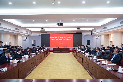 11月21日,中國科學院與內蒙古自治區(qū)人民政府在京召開科技合作座談會。中科院院長、黨組書記白春禮,內蒙古自治區(qū)主席布小林出席會議并講話。中科院副院長、黨組成員張亞平和內蒙古自治區(qū)副主席歐陽曉暉分別代表雙方簽署新一輪全面科技合作協(xié)議。會議由中科院黨組成員、北京分院院長何巖主持。
