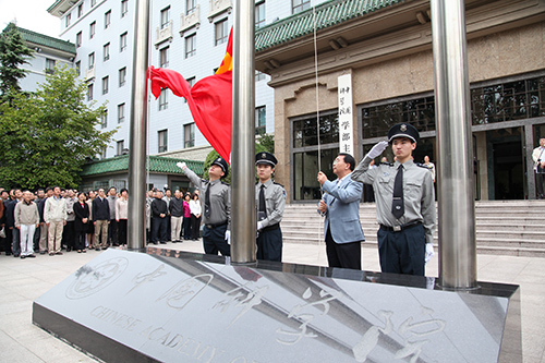 在京的中科院領(lǐng)導(dǎo)和300余名院機關(guān)職工參加了升旗儀式,中科院院長、黨組書記白春禮發(fā)表講話并升旗。