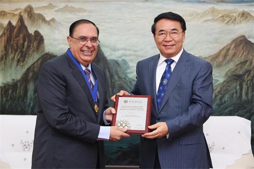 9月28日下午,中國科學(xué)院院長白春禮在北京為巴基斯坦科學(xué)院院長阿爾塔·拉曼(Atta-ur-Rahman)教授頒發(fā)了2013年度中國科學(xué)院國際科技合作獎獲獎證書和榮譽獎?wù)隆?/span>