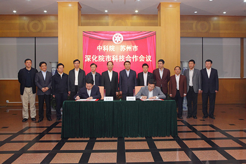 座談會后,鄧麥村和周乃翔代表院市雙方簽署了《中國科學(xué)院-蘇州市人民政府深化院市合作備忘錄》,雙方將共建中國科學(xué)院科技服務(wù)網(wǎng)絡(luò)蘇州中心;以蘇州市作為中科院科技體制改革的試驗(yàn)田,探索科技項(xiàng)目財(cái)務(wù)管理等系列制度改革;共同推動中科院蘇州納米所和蘇州醫(yī)工所加快發(fā)展;支持中科院的更多分支機(jī)構(gòu)和重大項(xiàng)目到蘇州落戶。