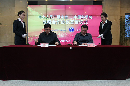 中央人民廣播電臺副臺長王曉暉、有關(guān)業(yè)務(wù)部門、下屬公司以及中科院重大科技任務(wù)局、科學(xué)傳播局、有關(guān)研究所的相關(guān)負責(zé)人員參加了簽約儀式。