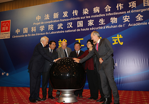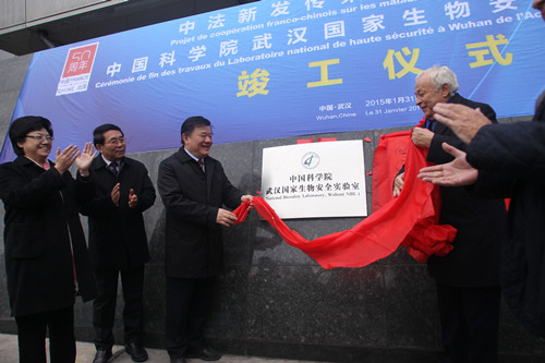 1月31日,中國(guó)科學(xué)院武漢國(guó)家生物安全實(shí)驗(yàn)室(即武漢P4實(shí)驗(yàn)室)竣工儀式在武漢市舉行。本次活動(dòng)由中科院和國(guó)家衛(wèi)生和計(jì)劃生育委員會(huì)共同舉辦,中科院武漢病毒研究所具體承辦。全國(guó)人大常委會(huì)副委員長(zhǎng)、農(nóng)工黨中央主席陳竺,國(guó)家衛(wèi)計(jì)委主任李斌,中科院院長(zhǎng)、黨組書(shū)記白春禮,湖北省委副書(shū)記、省長(zhǎng)王國(guó)生,法國(guó)政府與議會(huì)關(guān)系事務(wù)國(guó)務(wù)秘書(shū)讓-馬力﹒勒甘,法國(guó)梅里?;饡?huì)主席阿蘭﹒梅里埃出席并致辭。儀式由中科院副院長(zhǎng)張亞平主持,來(lái)自國(guó)家衛(wèi)計(jì)委、中科院、科技部、外交部、農(nóng)業(yè)部、國(guó)家質(zhì)檢總局、中國(guó)合格評(píng)定國(guó)家認(rèn)可委員會(huì)、法國(guó)梅里埃基金會(huì)、法國(guó)國(guó)家醫(yī)學(xué)與健康研究院、法國(guó)巴斯德研究院等中法新發(fā)傳染病合作項(xiàng)目成員單位及世界衛(wèi)生組織(WHO)駐華代表處的代表共計(jì)200余人參加了活動(dòng)。