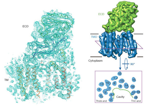 7. 首次獲人源葡萄糖轉(zhuǎn)運蛋白結(jié)構(gòu) 清華大學(xué)醫(yī)學(xué)院顏寧教授研究組在世界上首次解析了人源葡萄糖轉(zhuǎn)運蛋白GLUT1的晶體結(jié)構(gòu),初步揭示了其工作機(jī)制及相關(guān)疾病的致病機(jī)理。據(jù)介紹,該成果不僅是針對葡萄糖轉(zhuǎn)運蛋白研究取得的重大突破,同時為理解其他具有重要生理功能的糖轉(zhuǎn)運蛋白的轉(zhuǎn)運機(jī)理提供了重要的分子基礎(chǔ),揭示了人體內(nèi)維持生命的基本物質(zhì)進(jìn)入細(xì)胞膜轉(zhuǎn)運的過程,對于人類進(jìn)一步認(rèn)識生命過程具有重要的指導(dǎo)意義。該成果在《自然》雜志發(fā)表后,諾貝爾化學(xué)獎得主布萊恩?克比爾卡評價,針對人類疾病開發(fā)藥物,獲得人源轉(zhuǎn)運蛋白結(jié)構(gòu)至關(guān)重要。因此這是一項偉大的成就。該成果對于研究癌癥和糖尿病的意義不言而喻。