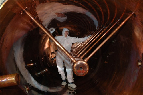 6. 能量最高質(zhì)子回旋加速器首次出束 7月4日,中國原子能科學(xué)研究院承建的100兆電子伏質(zhì)子回旋加速器首次出束,這標(biāo)志著國家重點科技工程--串列加速器升級工程的關(guān)鍵設(shè)施全面建成。該加速器是國際上最大的緊湊型強(qiáng)流質(zhì)子回旋加速器,也是我國自行研制的能量最高質(zhì)子回旋加速器。其設(shè)計突破70兆電子伏以上能區(qū)回旋均采用分離扇或螺旋扇的國際慣例,表明我國已掌握該領(lǐng)域一系列創(chuàng)新技術(shù)。工程建成后將填補我國中能強(qiáng)流質(zhì)子回旋加速器的空白,使我國成為少數(shù)幾個擁有新一代放射性核束加速器的國家。在國防核科學(xué)研究、新核素合成、天體物理研究、醫(yī)用同位素研發(fā)、治癌技術(shù)研究等前沿領(lǐng)域中有望取得突破性成果。