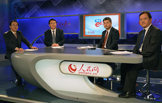 “兩會e客廳”邀請中科院黨組書記、院長白春禮(左二),全國人大代表、中科院上海生命科學研究院院長李林(左三),中科院國家空間科學中心主任吳季(左四),共同探討科技國家隊的改革與創(chuàng)新,訪談由本報記者趙永新(左一)主持。