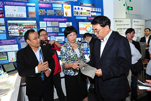 白春禮實地考察了寧波材料所科研成果展示廳、動力鋰電池工程實驗室、先進制造及新能源工程中心,聽取了“高能量密度動力鋰電池技術(shù)”、“碳纖維復(fù)合材料制造技術(shù)”、“新一代納米磁性材料技術(shù)”、“海洋工程材料關(guān)鍵技術(shù)”、“生物基高分子材料”、“精密驅(qū)動與智能機器人技術(shù)”、“超薄晶硅薄膜太陽能電池技術(shù)”、“先進激光加工技術(shù)”、“功能膜材料技術(shù)”、“煤化工催化劑”及“納米材料造影劑”等“一三五”及所重點方向的科研進展情況匯報,聽取了籌建中的慈溪醫(yī)工所的建設(shè)進展情況匯報,與科研人員親切交談,深入了解科研進展、技術(shù)特點和產(chǎn)業(yè)化前景。