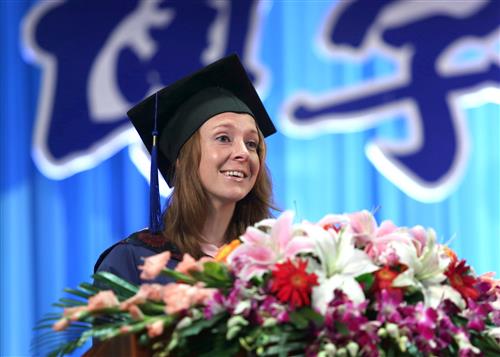 國(guó)科大中丹學(xué)院是2013年經(jīng)教育部批準(zhǔn)設(shè)立的中外合作辦學(xué)機(jī)構(gòu)。7月5日,首屆中丹兩國(guó)雙學(xué)位碩士畢業(yè)生代表也參加了學(xué)位授予儀式。來(lái)自丹麥的Christina Pamela Christiansen(克里斯蒂娜),畢業(yè)于中丹學(xué)院公共管理專業(yè)。在中國(guó)學(xué)習(xí)和實(shí)習(xí)期間,她就顯示出非凡的科研和工作能力,創(chuàng)立了兩個(gè)促進(jìn)跨國(guó)公司與中國(guó)企業(yè)合作的中介機(jī)構(gòu)。克里斯蒂娜在儀式上說(shuō):“我想強(qiáng)調(diào)我們?cè)趪?guó)科大所受的學(xué)術(shù)訓(xùn)練中包含的三個(gè)特性:向持有不同觀點(diǎn)的人學(xué)習(xí)的重要性;探索能夠應(yīng)對(duì)全球挑戰(zhàn)的新觀點(diǎn)的重要性;以及實(shí)現(xiàn)我們個(gè)人夢(mèng)想,并激勵(lì)身邊人鼓起勇氣和自信去追求夢(mèng)想的重要性?!?/p>