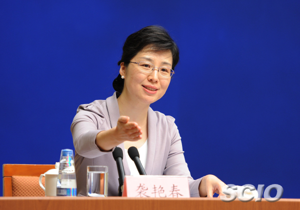國(guó)新辦新聞發(fā)言人襲艷春邀請(qǐng)記者提問(wèn)(吳曉山 攝)