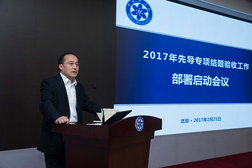 2月21日,中國科學(xué)院在北京組織召開戰(zhàn)略性先導(dǎo)科技專項(以下簡稱“先導(dǎo)專項”)結(jié)題驗收工作部署會,啟動對2017年實施期滿的4個A類、5個B類先導(dǎo)專項的結(jié)題驗收工作,并部署開展先導(dǎo)專項管理辦法修訂。中科院副院長、黨組成員張濤出席會議并講話,副秘書長汪克強主持會議。院機關(guān)相關(guān)部門負責人,先導(dǎo)專項首席科學(xué)家、依托單位負責人和專項管理人員代表共110余人參加會議。