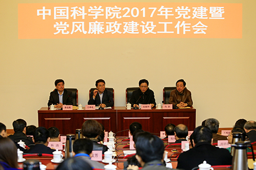 3月17日,中國(guó)科學(xué)院2017年黨建暨黨風(fēng)廉政建設(shè)工作會(huì)在京召開(kāi)。中科院院長(zhǎng)、黨組書(shū)記白春禮,黨組副書(shū)記、副院長(zhǎng)劉偉平,中央紀(jì)委駐中科院紀(jì)檢組組長(zhǎng)、黨組成員李志剛,黨組成員、副秘書(shū)長(zhǎng)何巖出席會(huì)議。會(huì)議由劉偉平主持。