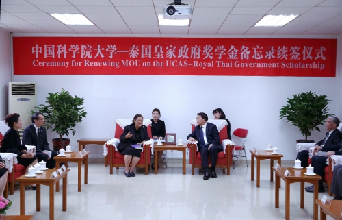 白春禮介紹了他于2013年擔(dān)任發(fā)展中國家科學(xué)院(TWAS)院長以來為推動(dòng)南南科技合作而設(shè)立“中科院-發(fā)展中國家科學(xué)院院長獎(jiǎng)學(xué)金”(CAS-TWAS President's Fellowship)計(jì)劃的情況。他說,目前已有40多名泰國留學(xué)生獲得該獎(jiǎng)學(xué)金資助在國科大學(xué)習(xí)。此外,還有數(shù)位泰籍博士后和訪問學(xué)者獲中科院國際人才計(jì)劃支持在華進(jìn)修或訪問。為了讓更多的泰國學(xué)生和學(xué)者了解國科大和中科院,白春禮建議國科大和泰方合作,實(shí)施國際夏令營項(xiàng)目。