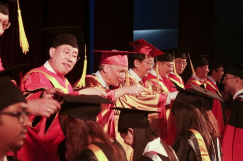 學位授予儀式上,2017年度博士學位獲得者代表朱飛龍,留學生代表、來自西班牙的博士學位獲得者Andres,以及導師代表、國科大計算機與控制學院副院長、中科院計算技術研究所副所長陳熙霖先后登臺發(fā)言。