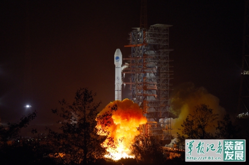 長征三號乙運(yùn)載火箭點(diǎn)火發(fā)射。楊中洲攝