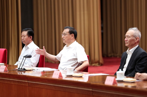 李克強分析了當(dāng)前經(jīng)濟形勢。他說,今年以來,我國經(jīng)濟延續(xù)穩(wěn)中向好態(tài)勢,國內(nèi)生產(chǎn)總值增速已連續(xù)11個季度穩(wěn)定在6.7%—6.9%之間,新增城鎮(zhèn)就業(yè)好于去年同期,企業(yè)利潤、財政收入實現(xiàn)兩位數(shù)增長,前4個月日均新登記企業(yè)1.67萬戶,支撐發(fā)展的經(jīng)濟結(jié)構(gòu)、動能、增長方式繼續(xù)呈現(xiàn)積極變化,經(jīng)濟向好的可持續(xù)性增強。但要看到,我國仍處于社會主義初級階段,仍是世界上最大發(fā)展中國家,經(jīng)濟發(fā)展外部環(huán)境錯綜復(fù)雜帶來很大不確定性,國內(nèi)長期積累的矛盾和新挑戰(zhàn)也很突出。我們既要對中國發(fā)展充滿信心,又不能急于求成,還是要埋頭苦干。必須以習(xí)近平新時代中國特色社會主義思想為指導(dǎo),全面貫徹黨的十九大精神,堅持發(fā)展第一要務(wù),落實新發(fā)展理念,按照黨中央、國務(wù)院部署,全面深化改革開放,著力激發(fā)市場活力、增強內(nèi)生動力、釋放內(nèi)需潛力,促進經(jīng)濟社會持續(xù)健康發(fā)展。