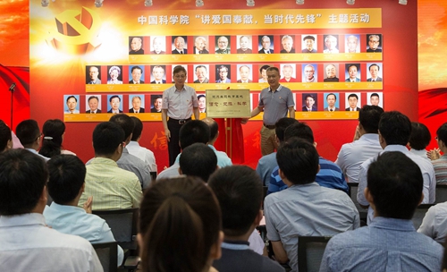 侯建國(guó)與物理所所長(zhǎng)方忠共同為全院首個(gè)“黨員主題教育基地”揭牌。據(jù)統(tǒng)計(jì),現(xiàn)在和曾在物理所工作、學(xué)習(xí)過(guò)的兩院院士共有68人,其中有41位院士是中國(guó)共產(chǎn)黨黨員。在物理所設(shè)立以“信念·黨旗·科學(xué)”為主題的教育基地,旨在引導(dǎo)廣大青年科技骨干傳承老一輩科學(xué)家建設(shè)世界科技強(qiáng)國(guó)的堅(jiān)定信念、忠于黨和人民的政治品質(zhì)、追求卓越和敢為人先的科學(xué)精神,牢固樹(shù)立“不忘初心跟黨走,科技報(bào)國(guó)為人民”的信念追求,將自己的理想追求與黨、國(guó)家和人民的奮斗目標(biāo)和共同理想緊密結(jié)合在一起,為實(shí)現(xiàn)“四個(gè)率先”目標(biāo)、建設(shè)世界科技強(qiáng)國(guó)貢獻(xiàn)力量。