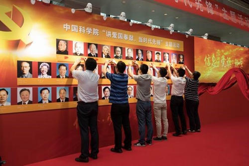 主題活動(dòng)上,100余名來(lái)自科研一線(xiàn)的青年科技骨干通過(guò)視頻重溫了錢(qián)三強(qiáng)、陳能寬、黃昆等老一輩黨員院士以身許國(guó)、終身為黨的感人事跡。老一輩科學(xué)家追求真理、勇攀高峰的科學(xué)精神,勇于創(chuàng)新、嚴(yán)謹(jǐn)求實(shí)的學(xué)術(shù)風(fēng)氣,矢志報(bào)國(guó)、淡泊明志的人格力量,激勵(lì)、啟發(fā)著在場(chǎng)的每一個(gè)人。青年科研骨干代表舉行了為院士墻上的黨員院士佩貼黨旗的莊重儀式。成為預(yù)備黨員的青年科研骨干分享了將自己的科研工作融入中華民族復(fù)興偉業(yè)的幸福感和成就感。來(lái)自中科院化學(xué)研究所、生物物理研究所、微電子研究所、植物研究所、國(guó)家空間科學(xué)中心等不同科研領(lǐng)域的青年黨員科研骨干重溫入黨志愿書(shū),回顧入黨初心,再現(xiàn)入黨時(shí)的莊嚴(yán)時(shí)刻。趙忠賢為現(xiàn)場(chǎng)400余名來(lái)自一線(xiàn)的青年科技人員上了一堂生動(dòng)的黨課,講述了老一輩黨員科學(xué)家對(duì)黨忠誠(chéng)、以國(guó)家需要為先的事跡和精神,講述了自己兌現(xiàn)入黨誓言、圍繞國(guó)家需求開(kāi)展科技創(chuàng)新的感人事跡。