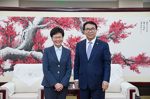 林鄭月娥表示,感謝白春禮院長在去年訪港時就香港創(chuàng)科發(fā)展給予寶貴意見,也感謝中科院安排香港大學生到北京實習,令他們獲益良多,期望明年再舉辦有關(guān)實習計劃。她介紹了香港在過去一年在推動創(chuàng)科發(fā)展方面取得的成效,并表示,這與中央的支持分不開,香港的大學和科研機構(gòu)可以直接申請中央財政的科技項目,并且科研項目資金能夠“過河”在港使用,對香港的創(chuàng)新科技發(fā)展帶來很大的鼓舞。她期望繼續(xù)得到中科院的支持,包括參與香港將建設的生物醫(yī)療科技創(chuàng)新平臺和人工智能與機器人科技創(chuàng)新平臺,以及凝聚粵港澳大灣區(qū)的院士,共同推動香港的創(chuàng)科發(fā)展。