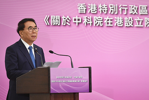 白春禮在致辭時(shí)指出,中科院在港設(shè)立院屬機(jī)構(gòu)對深化內(nèi)地與香港的科技合作、助力香港創(chuàng)新科技事業(yè)、支撐粵港澳大灣區(qū)發(fā)展意義重大。香港是國家實(shí)施創(chuàng)新驅(qū)動(dòng)發(fā)展戰(zhàn)略、建設(shè)創(chuàng)新型國家的重要力量,中科院與香港有著深厚的合作基礎(chǔ),與香港六所高校共建了22個(gè)聯(lián)合實(shí)驗(yàn)室,開展了實(shí)質(zhì)性的互利合作。在特區(qū)政府重點(diǎn)發(fā)展的生物醫(yī)藥和人工智能兩個(gè)平臺(tái)建設(shè)方面,中科院將在香港創(chuàng)新研究院的總體建設(shè)框架中,首批優(yōu)先啟動(dòng)兩個(gè)創(chuàng)新中心建設(shè)。在習(xí)近平主席和中央政府的英明領(lǐng)導(dǎo)下,在香港特區(qū)政府的大力支持下,希望以香港創(chuàng)新研究院建設(shè)為契機(jī),進(jìn)一步深化內(nèi)地與香港的科技合作,吸引國際一流科研人才,穩(wěn)定支持優(yōu)秀和良好類聯(lián)合實(shí)驗(yàn)室,不斷提升中科院與香港的大學(xué)之間的合作,為香港青年人才提供更多內(nèi)地實(shí)習(xí)機(jī)會(huì),為推進(jìn)粵港澳大灣區(qū)國際科技創(chuàng)新中心建設(shè)和加快建設(shè)世界科技強(qiáng)國做出貢獻(xiàn)。