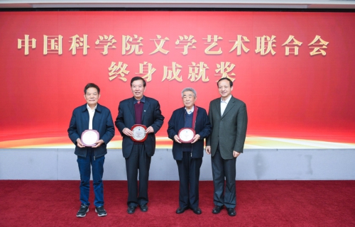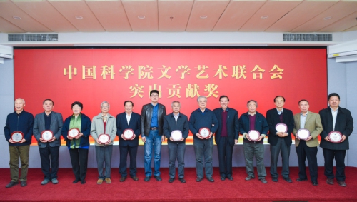 劉劍、郭曰方為院文聯(lián)突出貢獻(xiàn)獎(jiǎng)獲獎(jiǎng)?wù)哳C獎(jiǎng)