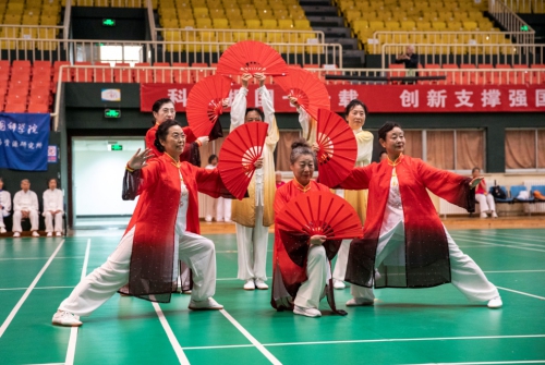 開幕式上,運動員們表演展示了健身氣功八段錦、自編組合24式太極拳、柔力球、健身球操以及自編功夫太極扇。展演隊員身著整齊服裝,精神飽滿地步入場地。行云流水的健身氣功和太極拳、神采飛揚的柔力球和健身球操、英姿颯爽的太極扇表演贏得了全場觀眾的熱烈掌聲,全場洋溢著熱烈、友愛、和諧的氣氛。