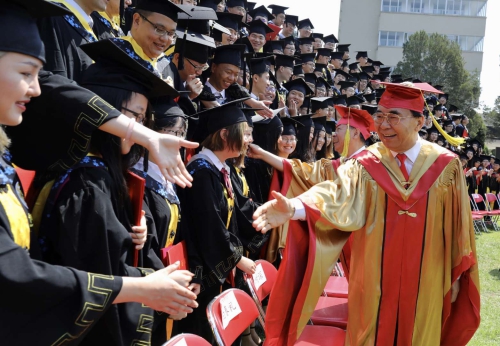 白春禮等與畢業(yè)生握手