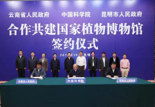 10月8日,中國(guó)科學(xué)院、云南省政府、昆明市政府在昆明舉行合作共建國(guó)家植物博物館簽約儀式。中科院副院長(zhǎng)、黨組成員張亞平,云南省委常委、昆明市委書記程連元,云南省副省長(zhǎng)董華出席會(huì)議。院省市三方簽署了《云南省人民政府 中國(guó)科學(xué)院 昆明市人民政府合作共建國(guó)家植物博物館協(xié)議書》。