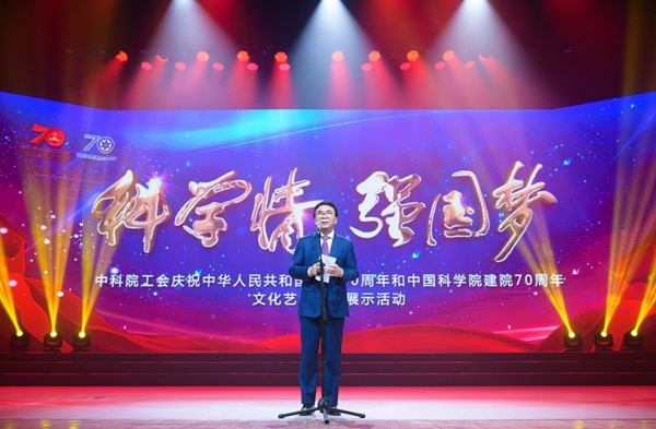 11月1日晚,中國(guó)科學(xué)院工會(huì)慶祝新中國(guó)成立70周年和中科院建院70周年文化藝術(shù)現(xiàn)場(chǎng)展示活動(dòng)在北京劇院舉行。中科院院長(zhǎng)、黨組書(shū)記白春禮,副院長(zhǎng)丁仲禮,黨組副書(shū)記、副院長(zhǎng)侯建國(guó),副院長(zhǎng)、黨組成員張濤,駐院紀(jì)檢監(jiān)察組組長(zhǎng)、黨組成員孫也剛,副院長(zhǎng)、黨組成員李樹(shù)深,黨組成員、秘書(shū)長(zhǎng)鄧麥村,副秘書(shū)長(zhǎng)汪克強(qiáng),副秘書(shū)長(zhǎng)、院工會(huì)主席李和風(fēng)等在京院領(lǐng)導(dǎo)、中央和國(guó)家機(jī)關(guān)工委群工部(統(tǒng)戰(zhàn)部)部長(zhǎng)馬勇明、中國(guó)教科文衛(wèi)體工會(huì)主席章國(guó)賢等有關(guān)領(lǐng)導(dǎo)出席,京區(qū)職工代表共900余人參加了活動(dòng)。