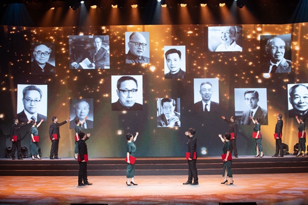 第一篇章“報(bào)國(guó)志”以短視頻《與祖國(guó)同行》開(kāi)篇,將人們的記憶帶回到中科院建院初期,回顧了中科院與祖國(guó)共命運(yùn)、始終引領(lǐng)國(guó)家科技事業(yè)發(fā)展的光輝歷程。合唱《國(guó)家》《祖國(guó)不會(huì)忘記》用歌聲唱出對(duì)祖國(guó)的深情眷戀,唱出所有為祖國(guó)默默奉獻(xiàn)的科技工作者的心聲;講述《挺起共和國(guó)的脊梁》、詩(shī)朗誦《在科學(xué)人墓前的致敬》生動(dòng)詮釋了一代代中科院人科技報(bào)國(guó)、創(chuàng)新為民的科學(xué)精神和高尚情懷;在情景劇《等待》中,“兩彈一星”元?jiǎng)奏嚰谙纫陨碓S國(guó),夫人許鹿希默默等待一生的故事,感動(dòng)了在場(chǎng)每一個(gè)人。