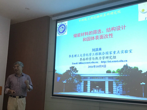 10月9日,華東理工大學(xué)教授劉洪來應(yīng)邀到中國科學(xué)院蘭州化學(xué)物理研究所蘇州研究院訪問交流,并作了題為“儲能材料的篩選、結(jié)構(gòu)設(shè)計和固體表面改性”的學(xué)術(shù)報告。