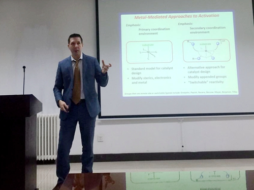 應(yīng)“理化青年論壇”和中國(guó)科學(xué)院光化學(xué)轉(zhuǎn)換與功能材料重點(diǎn)實(shí)驗(yàn)室邀請(qǐng),美國(guó)密歇根大學(xué)教授Nathaniel K. Szymczak于10月10日來(lái)理化所交流訪問(wèn),并作了題為Moving Beyond the Metal: Assisted Small Molecule Activation的學(xué)術(shù)報(bào)告。