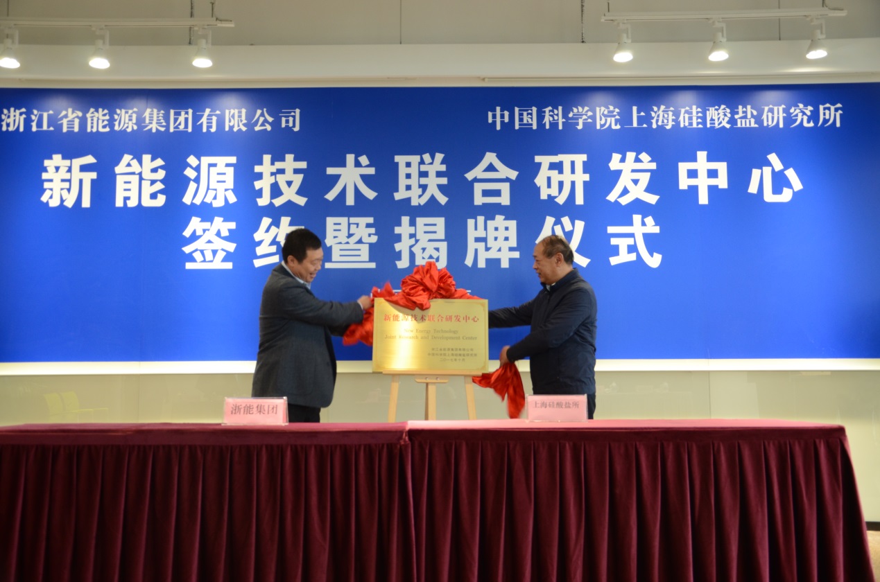 10月16日上午,中國(guó)科學(xué)院上海硅酸鹽研究所與浙江省能源集團(tuán)共建新能源技術(shù)聯(lián)合研發(fā)中心簽約暨揭牌儀式舉行。