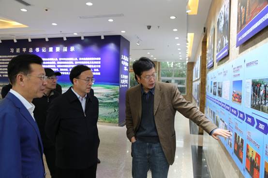 訪問(wèn)期間,袁占亭與陳發(fā)虎等學(xué)習(xí)了習(xí)近平總書記致中國(guó)科學(xué)院青藏高原綜合科學(xué)考察研究隊(duì)的賀信,深刻理解和把握習(xí)近平總書記的生態(tài)文明建設(shè)理念和綠色發(fā)展思想。隨后,袁占亭一行分別參觀了研究所科研成果展板和環(huán)境變化與地表過(guò)程院重點(diǎn)實(shí)驗(yàn)室。