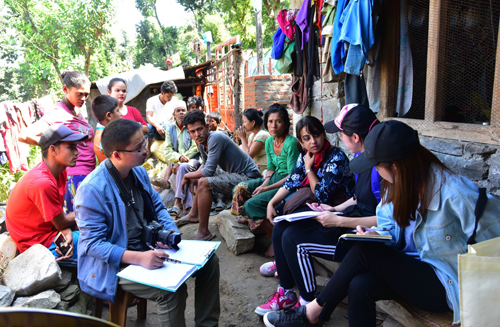 此次主要考察了柯西河流域Sunkoshi River、Tama Koshi River、Rosi Koshi River、Magha Khola River等,涵蓋了Dhulikhel、Ramechhep、Manthali、Sindhulimadi、Janakpur、Dolalghat、Chautara、Sindhupalchowk等區(qū)域,行程超過(guò)1000公里。考察組采用訪(fǎng)談、問(wèn)卷調(diào)查、實(shí)地踏勘等方式,克服了語(yǔ)言不通、交通閉塞、生活不適等困難,對(duì)山區(qū)農(nóng)戶(hù)、農(nóng)村基層組織、政府部門(mén)等開(kāi)展了廣泛、深入的調(diào)查研究,獲取了90余份調(diào)查問(wèn)卷及大量的文字圖像資料?;趶哪系奖钡牡乩順訋В瑢?duì)柯西河流域氣候變化、資源環(huán)境、農(nóng)戶(hù)生計(jì)狀況、生計(jì)影響因素及氣候變化下的適應(yīng)策略等問(wèn)題有了較為全面的認(rèn)識(shí)和把握。