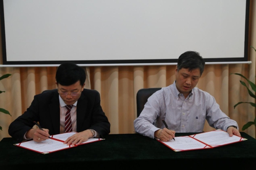 深圳先進院黨委書記楊建華(右)與越南水利大學校長Nguyen Quang Kim(左)簽署合作備忘錄