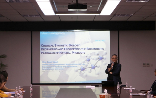 10月25日,韓國梨花女子大學(xué)教授Yeo Joon Yoon受邀參加中國科學(xué)院青島生物能源與過程研究所主辦的合成生物學(xué)系列學(xué)術(shù)講座。Yeo Joon Yoon任韓國梨花女子大學(xué)化學(xué)與納米科學(xué)學(xué)院教授,J. Microbiol. Biotechnol.、Appl. Microbiol. Biotechnol.和Biomed Res. Int.雜志編委,Nat. Prod. Rep.雜志顧問委員會委員。研究方向主要是通過異源表達(dá)、組合生物合成以及代謝工程等方法高效合成結(jié)構(gòu)多樣的活性天然產(chǎn)物。Yeo Joon Yoon在生物合成及合成生物學(xué)領(lǐng)域的研究具有很深的造詣。