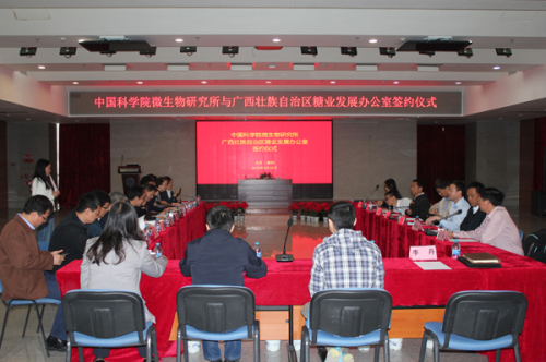 4月22日上午,中國(guó)科學(xué)院微生物研究所與廣西壯族自治區(qū)糖業(yè)發(fā)展辦公室就甘蔗產(chǎn)業(yè)與糖加工領(lǐng)域進(jìn)行合作洽談,并簽署合作協(xié)議。