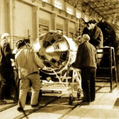 1970年初,科研人員在廠房內測試“東方紅一號”衛(wèi)星。