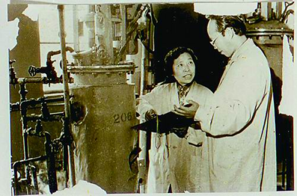 20世紀(jì)60年代,微生物所嚴(yán)自正(左)和陶增鑫在工廠做維生素C綠色發(fā)酵實(shí)驗(yàn)。微生物所供圖