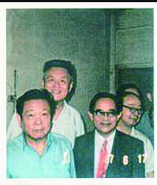 秦元勛(前排右)和彭桓武院士(前排左)參加慶祝中國第一顆氫彈爆炸成功二十周年紀念活動。數(shù)學院供圖