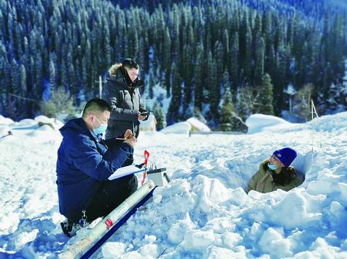 2023年7月,科研人員在G218鞏乃斯河谷雪崩站執(zhí)行第三次新疆科考任務(wù)——伊犁河流域雪崩災(zāi)害調(diào)查。新疆生地所供圖