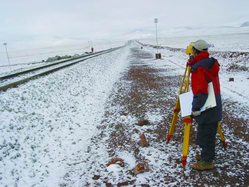 西北研究院科研人員在青藏鐵路沿線開展凍土變形觀測。西北研究院供圖
