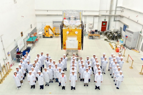 衛(wèi)星發(fā)射場(chǎng)試驗(yàn)隊(duì)合影(HXMT造型)